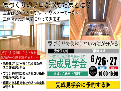 来たる6/26(土)27(日)八代市奈良木町にて完全予約制見学会を行います。
